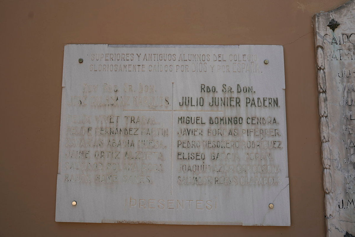 De la làpida número 1, probablement ubicada originalment als Salesians, només s'ha pogut verificar la procedència de Girona d'una persona, la de Ramon Mañé Sanés, el qual consta que era maquinista. La resta de religiosos o estudiants no tenen relació aparent amb Girona i, de fet, algun d'ells no va morir assassinat sinó de tuberculosi.