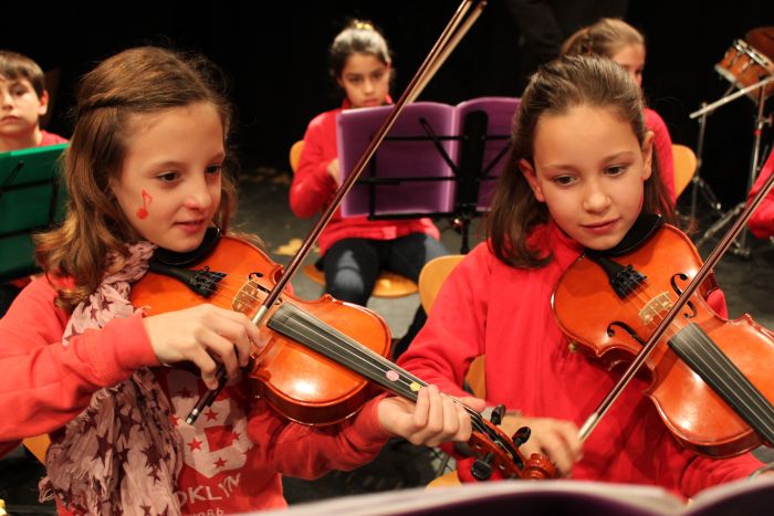 El dissabte 6 de febrer al matí concert de l'orquestra infantil de corda juntament amb alumnes de l'escola de Llagostera.