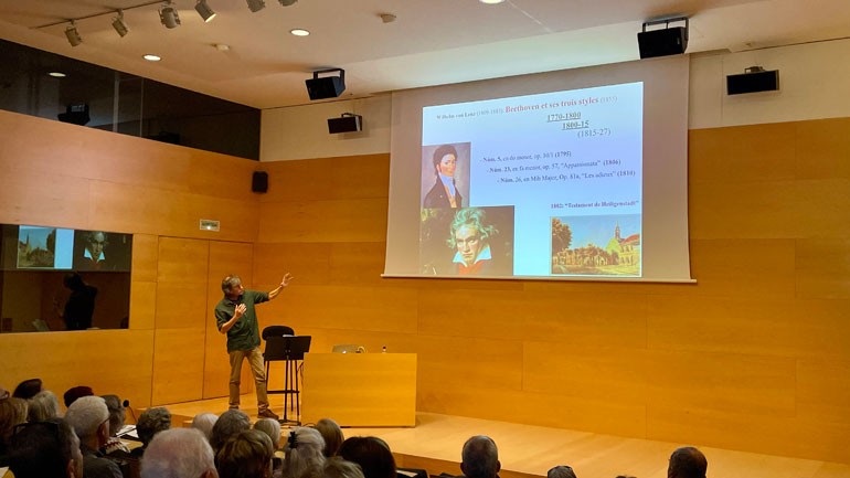 L'activitat, promoguda per l'Escola Municipal de Música de Girona, es dirigeix a qualsevol persona que tingui interès per la música clàssica i els aspectes humanístics que l'envolten. El cicle consta de diverses sessions durant les quals s'escoltaran i es comentaran una sèrie d'obres. Les sessions són impartides per en Rafael Esteve Alemany, que va crear el projecte de l'Aula Oberta de l'Escola Municipal de Música de Girona l'any 1998.