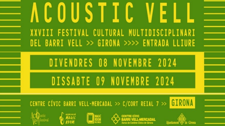 Una vegada més, i de la mà de MagicRoom, us presentem una nova edició del Festival Acoustic Vell. Arribem a la XXVIIIa edició, amb una exposició fotogràfica, curtmetratge, xerrades i, com no, música! Us hi esperem els dies 8 i 9 de novembre a partir de les 19h. Ja us ho podeu marcar al calendari.