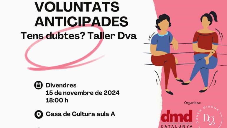 Aquest taller té per objectiu explicar i resoldre dubtes dels Documents de Voluntats Anticipades.