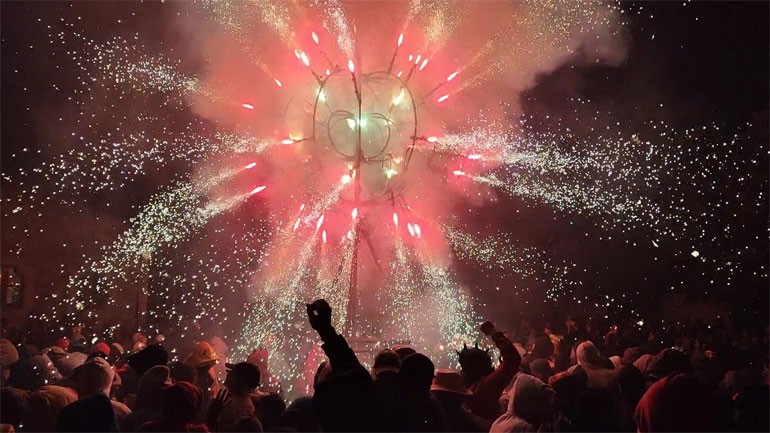 Al Barri Vell s’apaguen les llums i els Diables de l’Onyar apareixen d’entre les ombres per omplir els carrerons amb foc, percussió i adrenalina. El correfoc acabarà amb un gran espectacle de música i pirotècnia on les bèsties més salvatges cremaran al cor de Girona. Seguidament, encesa de bateries i espectacle de percussió amb malabaristes de foc.