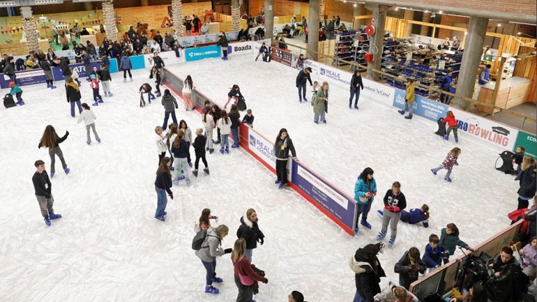 Una pista de gel coberta dividida en dos i de 800 m2 -una de les més grans de Catalunya- i un tobogan de 2,5 metres d’alçada, 27 metres de llargada i amb 3 carrils per baixar-hi amb trineu.