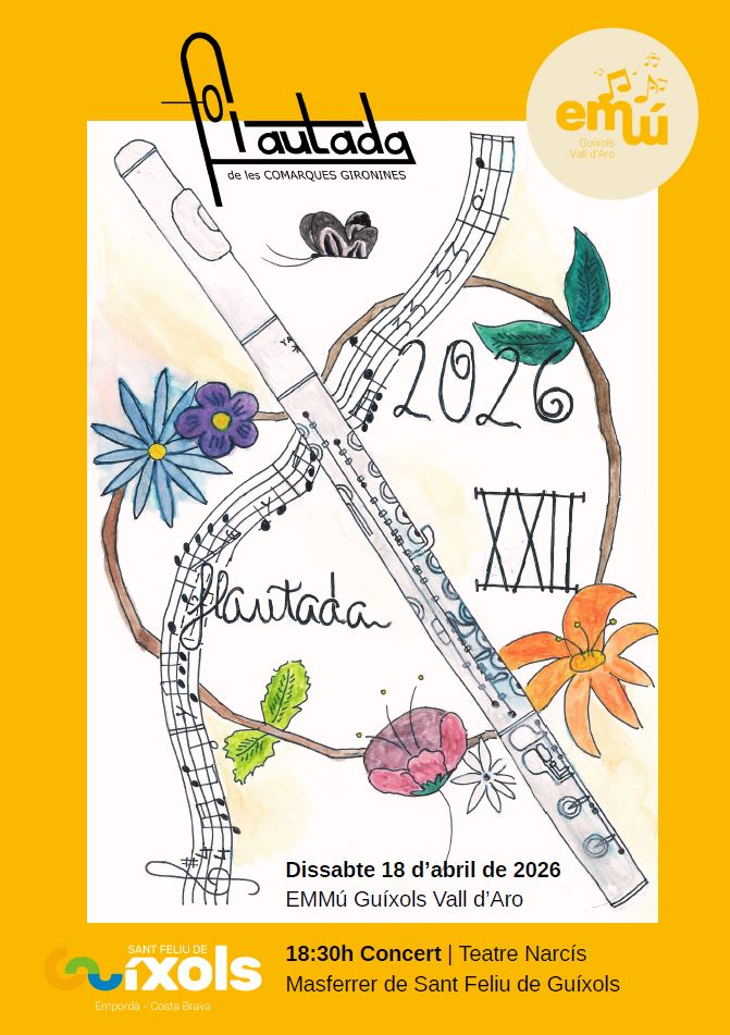 El proper dissabte 18 d'abril de 2026 tindrà lloc una nova edició de la Flautada de les Comarques Gironines, que enguany celebra la seva vint-i-dosena edició. La trobada, ja consolidada com una cita destacada dins el calendari musical del territori, reunirà alumnat de flauta travessera de diverses escoles de música gironines.