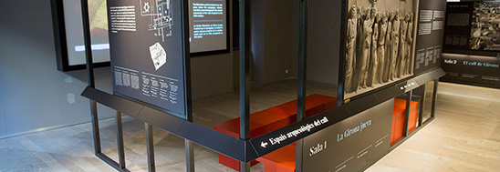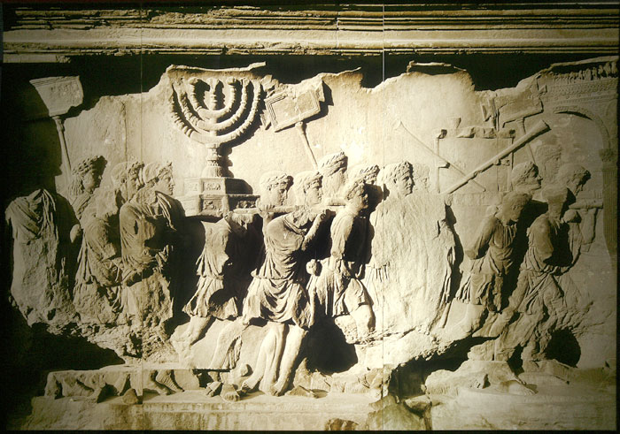 L'inici del recorregut pel museu relata els orígens de la comunitat jueva de Girona. Viatgem amb el Poble Jueu des d'antic, l'acompanyem al llarg de les seves travessies. Amb el punt de partida durant la persecució en temps de l'Imperi Romà, el Poble Jueu s'escampa pel Mediterrani, en un viatge sense fi. Les primeres famílies varen establir-se a la ciutat ja al s. IX, i varen crear-hi una comunitat amb vida i identitat pròpies. Peces destacadesArc de TitusDetall del panell interior. Segle I dC, Fòrum de Roma (Itàlia). Reproducció |