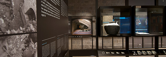 The aljama was the organizational structure of the Jewish communities in the Crown of Aragon. They highly depended on the Christian power. Outstanding itemsThree-handled jugGreen-glazed ceramic. 13th century, Girona. Found in the courtyard of the museum in 2012. BuckleBronze, 13th-15th centuries, Montjuïc (Girona). A belt buckle with the decorative image of an imaginary animal that may be the Leviathan, one of the main creatures inhabiting the mythological and symbolic universe of Judaism. This small gem of an item vividly evokes the everyday life of Jewish Girona. EarringsSilver. 13th-15th centuries, Girona's Montjuïc (cession of the Archeology Museum of Catalonia. Girona). |