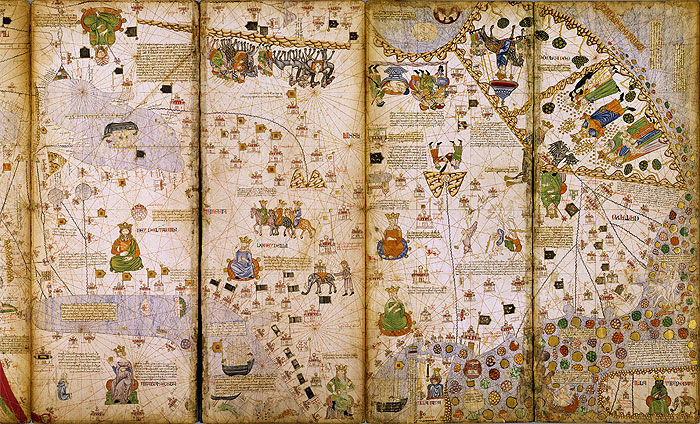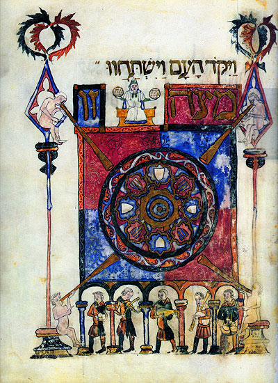 Images taken from medieval documents give us an idea of the main occupations of the Jewish inhabitants of Girona. Craftsmanship, commerce and money-lending were the most important among them. In addition, the literacy imposed on the boys by the Jewish religion gave rise to an outstanding scientific specialization, with well-known doctors, cartographers or astronomers. Outstanding itemsCatalan Atlas1373, Majorca. Reproduction (original held in the French National Library, Paris). The Barcelona HaggadahEarly 15th century, Catalonia (facsimile of the original in the British Library, London). The Catalan Jews were excellent craftsmen, copiers and booksellers. The Haggadah tells the story of the Exodus and the freeing of the Jewish People from slavery in Egypt, and has been read since time immemorial on the night of Passover. Some magnificently illustrated examples are still preserved in Europe, originating from the workshops of the Jewish artists of medieval Catalonia. This volume is called the "Barcelona Haggadah" because it is thought that it was produced in that city. |