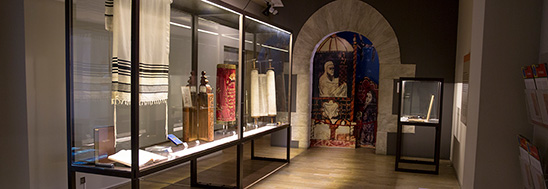 This part of the museum introduces the visitors to the sacred space of the synagogue, where the community studies, prays, meets and celebrates its festivities. Here, elements of worship and rituals, as well as archaeological finds and documents (original artifacts and reproductions) related to the synagogues of Girona, are displayed. Outstanding itemsInscription from the synagogueGirona limestone. 14th century, Girona (cession of the Archeology Museum of Catalonia. Girona). Sefer TorahInk on parchment. 19th century, Gemany (cession of the Barcelona Jewish Community). Act of Sale of the synagogues of GironaInk on parchment, in Latin, dated 10th July 1492, Girona. Girona Municipal Archive (facsimile). As a result of the Decree of Expulsion issued by King Ferdinand concerning all the Jewish inhabitants of Catalonia, the leaders of the Jewish community sell the synagogue premises (which are the property of the whole community) to the canons of Girona Cathedral. The sale is completed at a price of 300 pounds. |