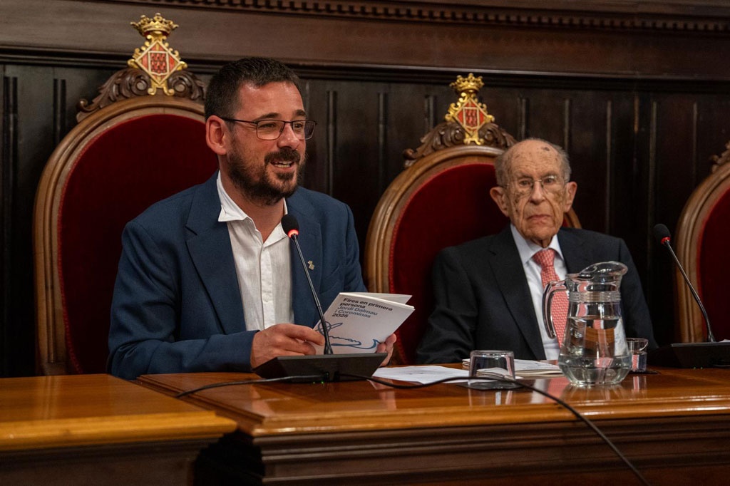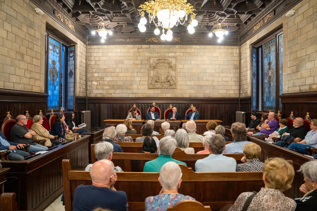 El Saló de Plens de l’Ajuntament de Girona s’ha omplert per escoltar les anècdotes i experiències personals de Jordi Dalmau durant les Fires. L’acte ha comptat amb la intervenció de l’alcalde de Girona, Lluc Salellas i Vilar, qui després d’una breu introducció, ha donat pas al relat de l’articulista.