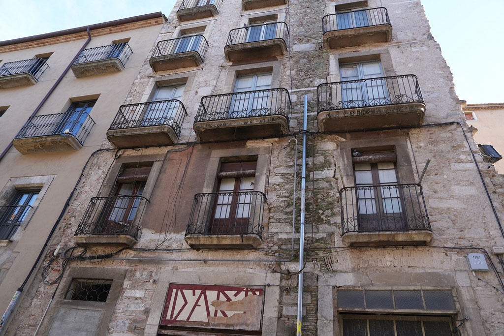 Aquesta actuació s’ha fet de manera preventiva arran d’un petit despreniment. Es tracta d’una finca del segle XIX de cinc plantes d’ús residencial i uns baixos que, antigament, havien acollit comerços.