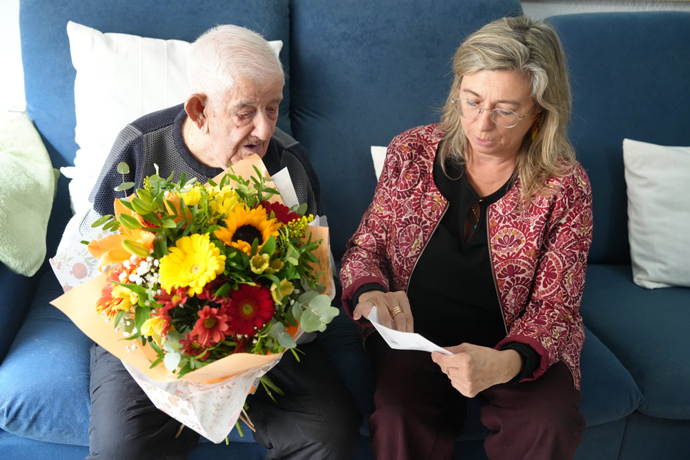 La regidora l’hi va entregar un ram de flors i una carta de felicitació firmada per l’alcalde de Girona, Lluc Salellas i Vilar.