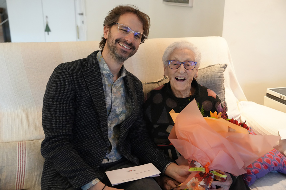 Després d’una breu conversa, el regidor li ha entregat un ram de flors i una carta de felicitació firmada per l’alcalde de Girona, Lluc Salellas i Vilar.