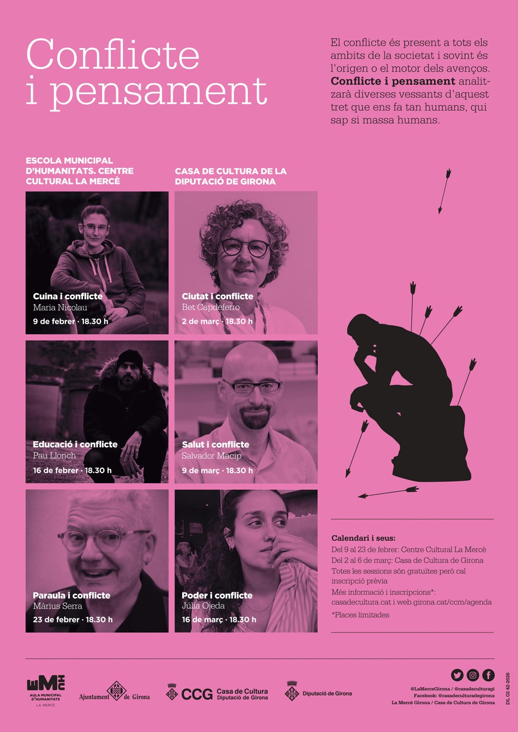 El cicle "Conflicte i pensament" és una activitat gratuïta amb inscripció prèvia obligatòria per a cada sessió. Les inscripcions i tota la informació es poden consultar als webs del Centre Cultural La Mercè i de la Casa de Cultura. Un cicle que convida a pensar el conflicte no com un problema a eliminar, sinó com una força que, ben entesa, pot esdevenir motor de pensament i transformació.
