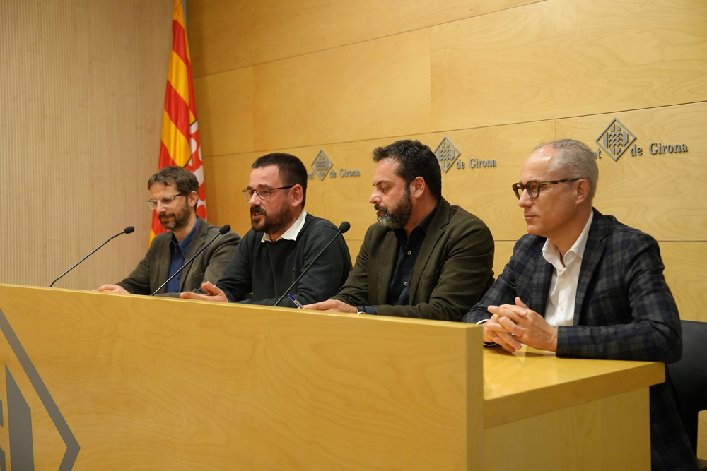 L'alcalde de Girona, Lluc Salellas Vilar, n'ha explicat els detalls aquest matí acompanyat pel tinent d'alcaldia i regidor de Cultura, Quim Ayats Bartrina; pel tinent d'alcaldia i regidor de Transició Ecològica i Àrea Urbana, Sergi Font Domènech, i pel regidor d'Urbanisme de Proximitat i Planejament, Lluís Martí Arderiu.