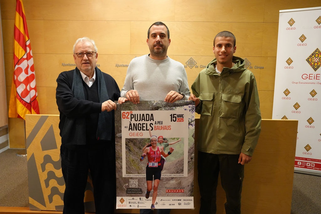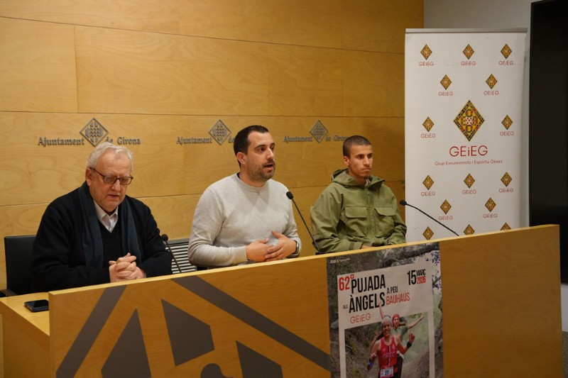 La ciutat de Girona acollirà el diumenge 15 de març la 62a Pujada als Àngels del GEiEG. La cursa, que es disputa des de 1964, s'ha consolidat com una de les primeres curses de muntanya de Catalunya i de l'Estat espanyol i és considerada avui la degana en la seva especialitat. Aquest matí, el regidor d'Esports i de Joventut de l'Ajuntament de Girona, Àdam Bertran Martínez; el president del GEiEG, Francesc Cayuela, i el corredor que actualment té el record de la cursa, Ismail Atriki, han presentat la competició.
