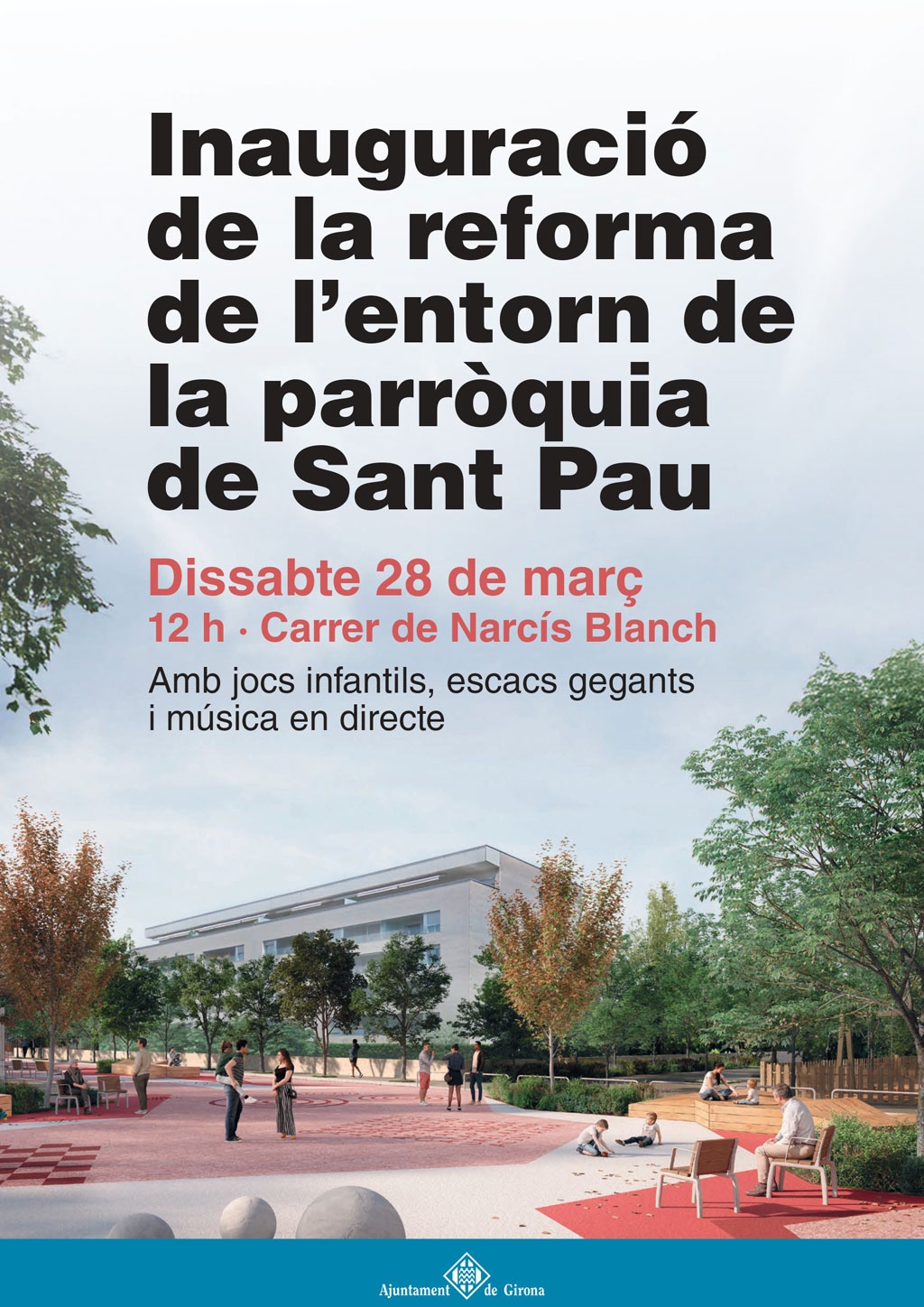 L'Ajuntament de Girona ha organitzat un vermut musical amb diverses activitats adreçades a tota la família per inaugurar l'entorn pacificat de la parròquia de Sant Pau. La proposta tindrà lloc el migdia del dissabte 28 de març, al tram del carrer de Narcís Blanch i Illa que ha passat a ser un espai exclusiu per a persones vianants.