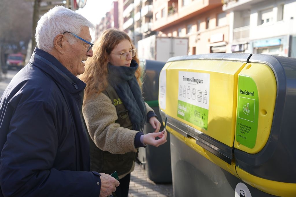Nota: Us enviem, adjunta, una imatge d'una educadora ambiental ajudant a un veí a dipositar els residus a un contenidor intel·ligent.