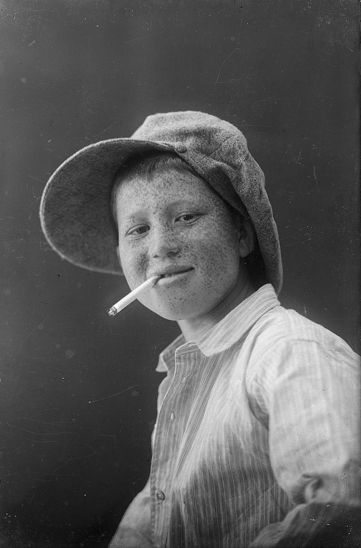 La fotografia del nen amb la cigarreta a la boca pot provocar a l'espectador contemporani una certa perplexitat. Possiblement no es tracti d'una escena real, d'un tros de vida quotidiana, sinó més aviat d'una representació on la posada en escena està als servei de la imatge que es vol transmetre a l'espectador. Copiant els estereotips dels adults, l'infant s'acosta a la vida adulta i es mostra tal i com li agradaria ser vist, en un espai de transgressió.